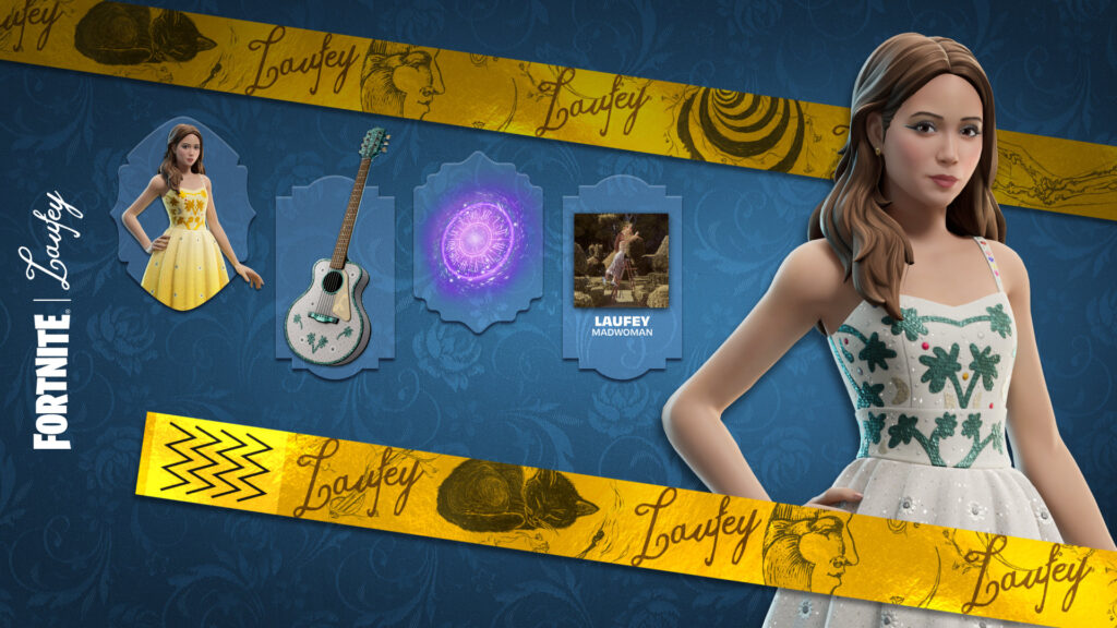 As you progress through the Season 14 Music Pass you’ll have the ability to unlock Laufey-themed Instruments, Auras, and even the “Madwoman” Jam Track! By purchasing the pass or having an active Fortnite Crew Subscription you’ll instantly get the White Dress Laufey Outfit, and after grinding out the pass you can even unlock a Golden Era Laufey variant for that outfit!